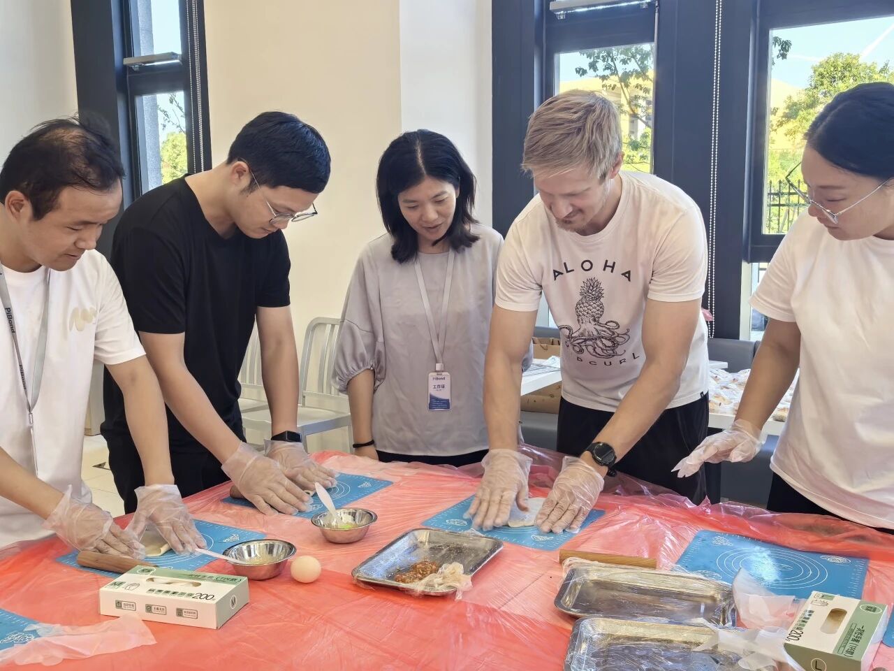作为活动亮点,专业肉月饼制作体验区吸引了众多人才踊跃参与。活动邀请本地糕点师傅现场教学,从和面、调馅到包制、烘烤,全程展示传统肉月饼的制作工艺。人才们在师傅指导下,亲手揉制酥皮、包裹鲜肉馅料,体验“指尖上的美味”。“原来肉月饼的酥皮要经过三次折叠才能达到层次分明的效果!”一位年轻人才感叹道,“活动不仅品尝到了当地特色肉月饼,更是让我感受到了节日的温度。”