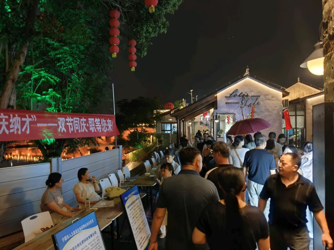 时维金秋,佳节双至。为庆祝中秋、国庆双节,9月30日晚,2025就业政策宣传月暨宁国市百日千万招聘行动“中秋揽月,国庆纳才”专场人才夜市招聘会在古韵悠长的河沥老街热闹开展。