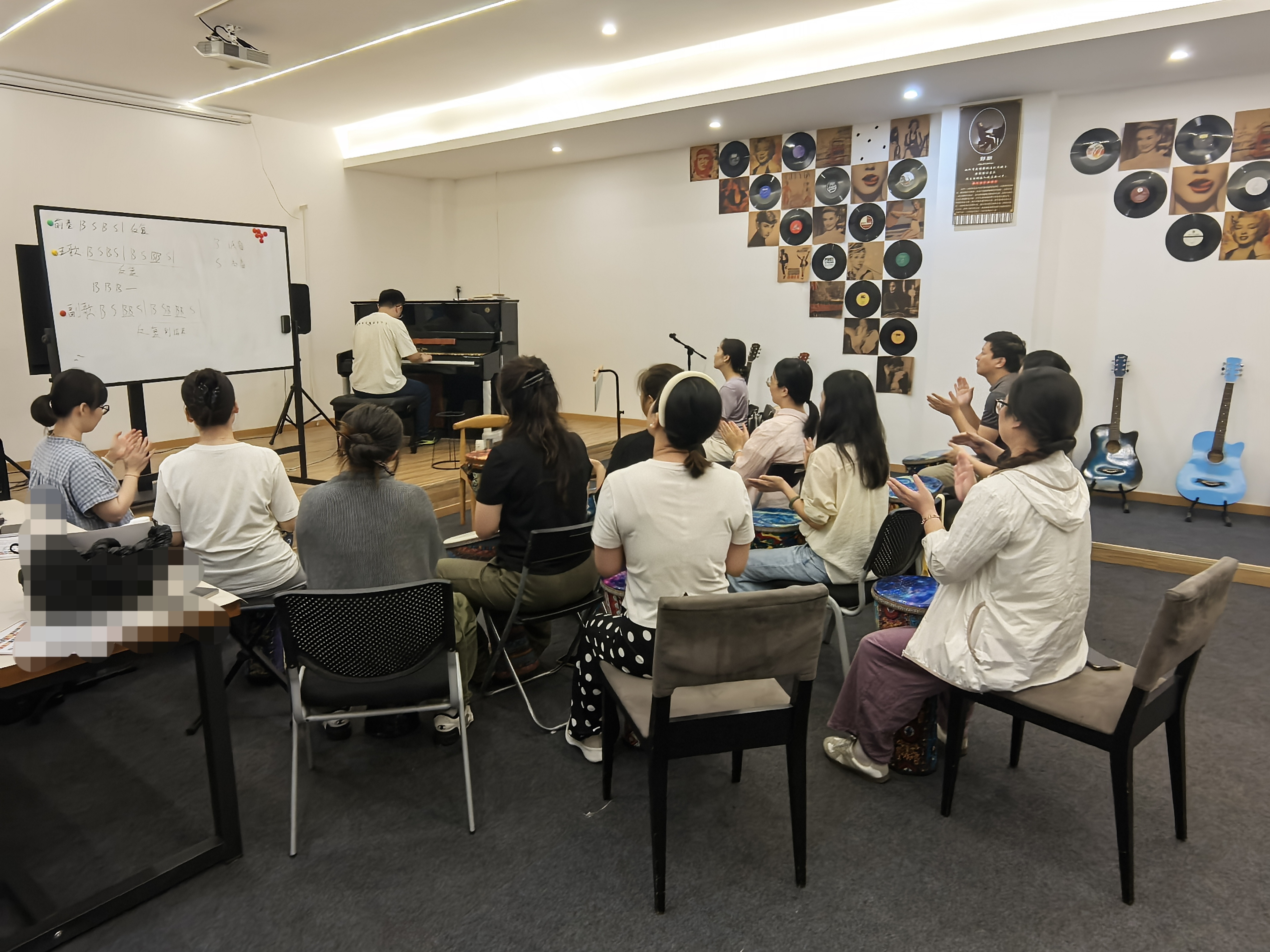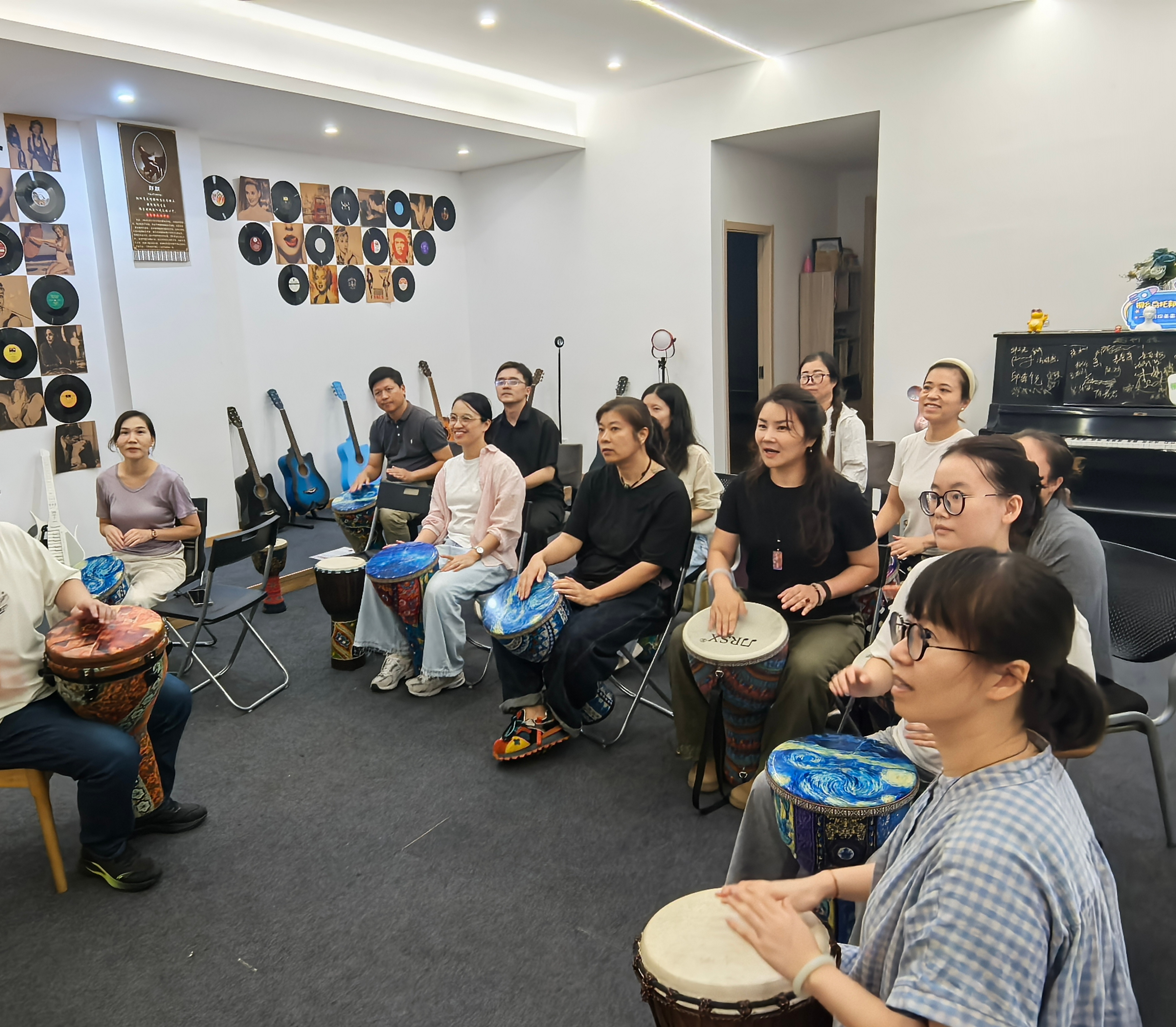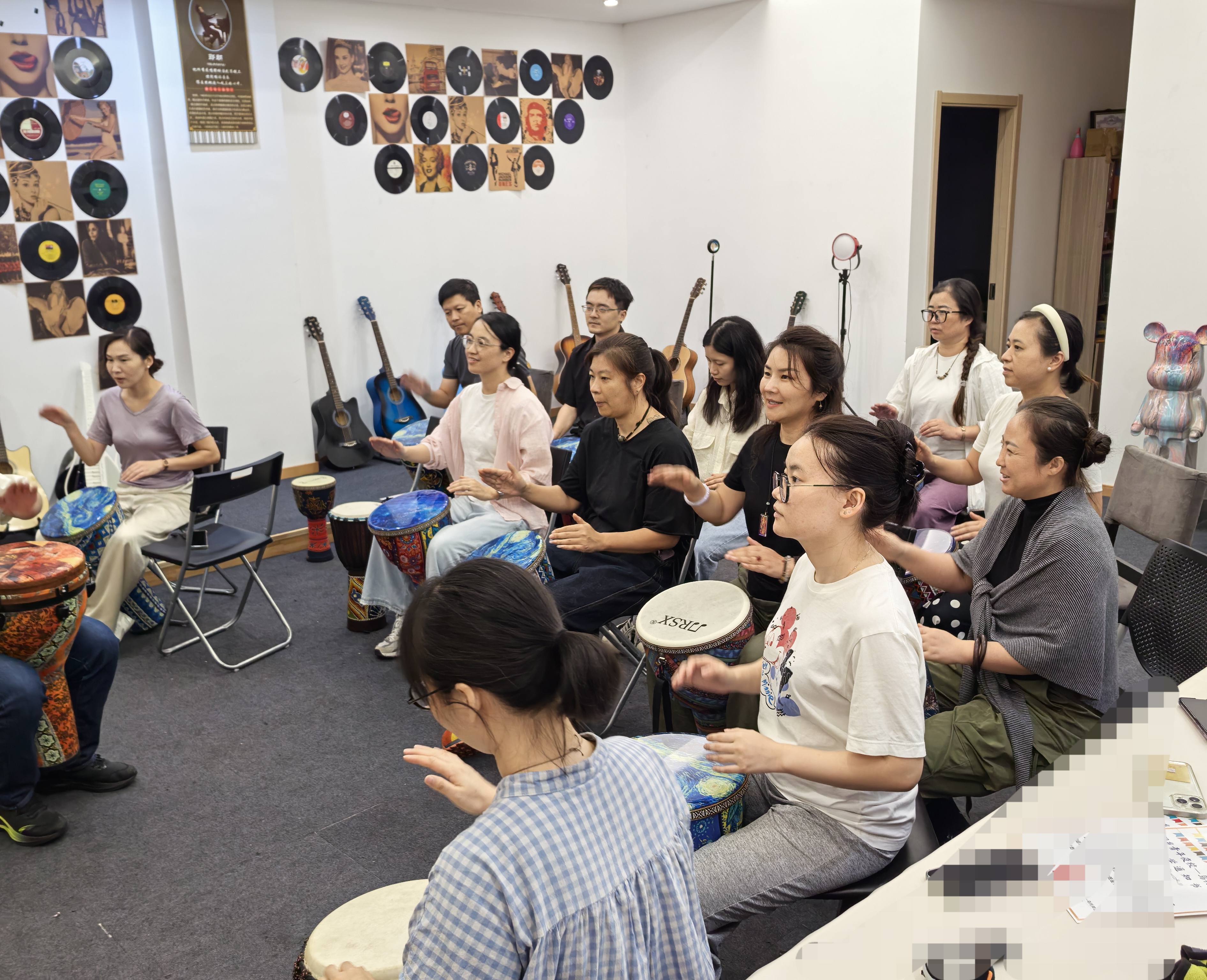 除技能学习外,课程更注重情绪疏导。王老师引导学员闭目聆听鼓点频率,通过即兴演奏释放工作压力。有学员感慨:“敲击的瞬间,大脑仿佛被按下暂停键,焦虑随鼓声烟消云散。”活动尾声的自由交流环节,大家围坐分享感悟,从音乐节奏谈到项目管理,思维的火花在轻松氛围中迸发。