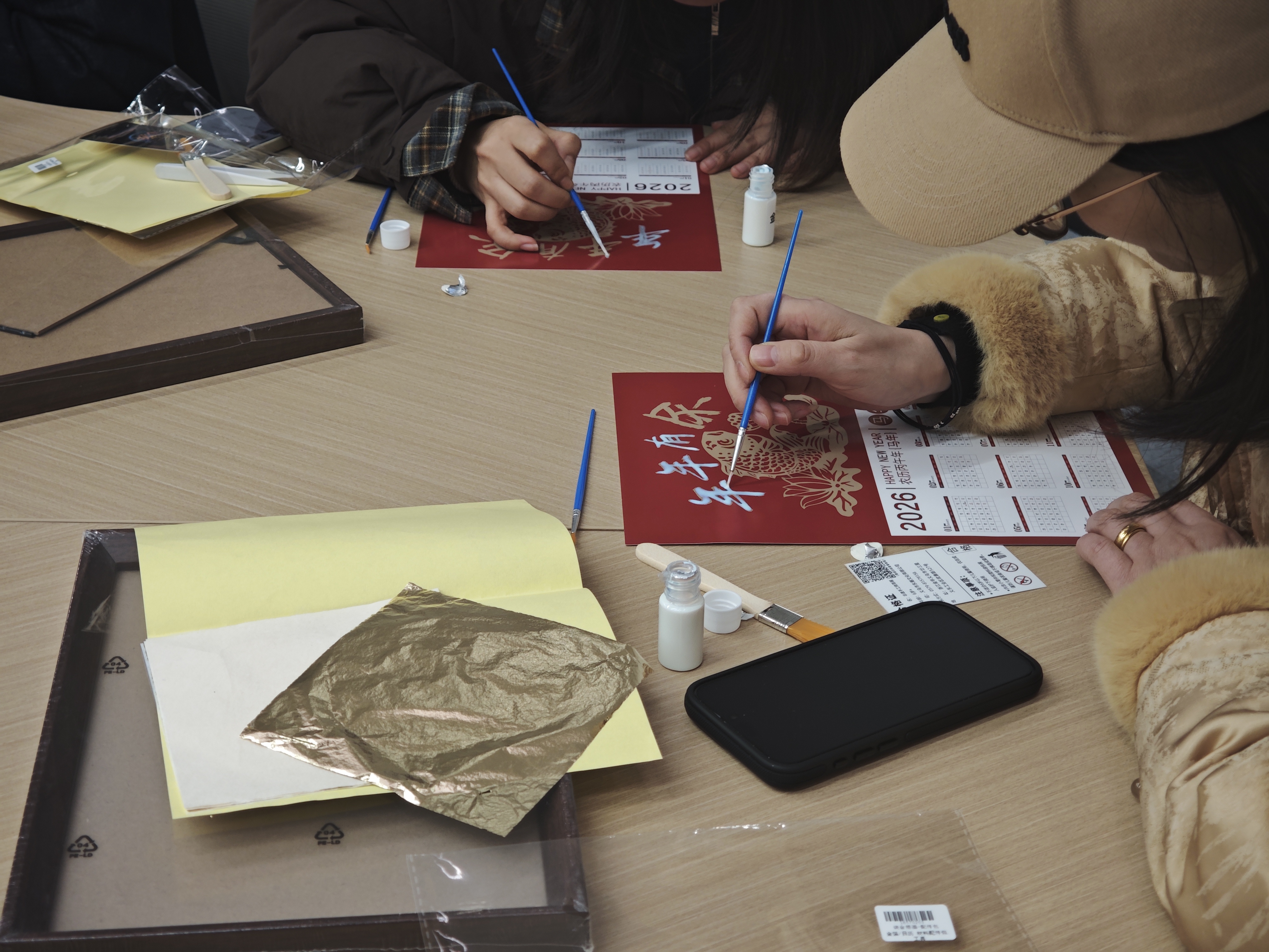 岁末冬寒,温情满屋。承载着对新年的美好期盼,我们以积极饱满的心态迎接2026到来!12月30晚,乌镇人才之家开展“非遗金箔·马上迎新”——金箔日历手作活动。本次活动将非遗体验与新年仪式感相结合,20位人才朋友亲手制作马年主题的金箔日历相框,感受传统技艺的魅力,在明信片上写下新年目标与祝福。