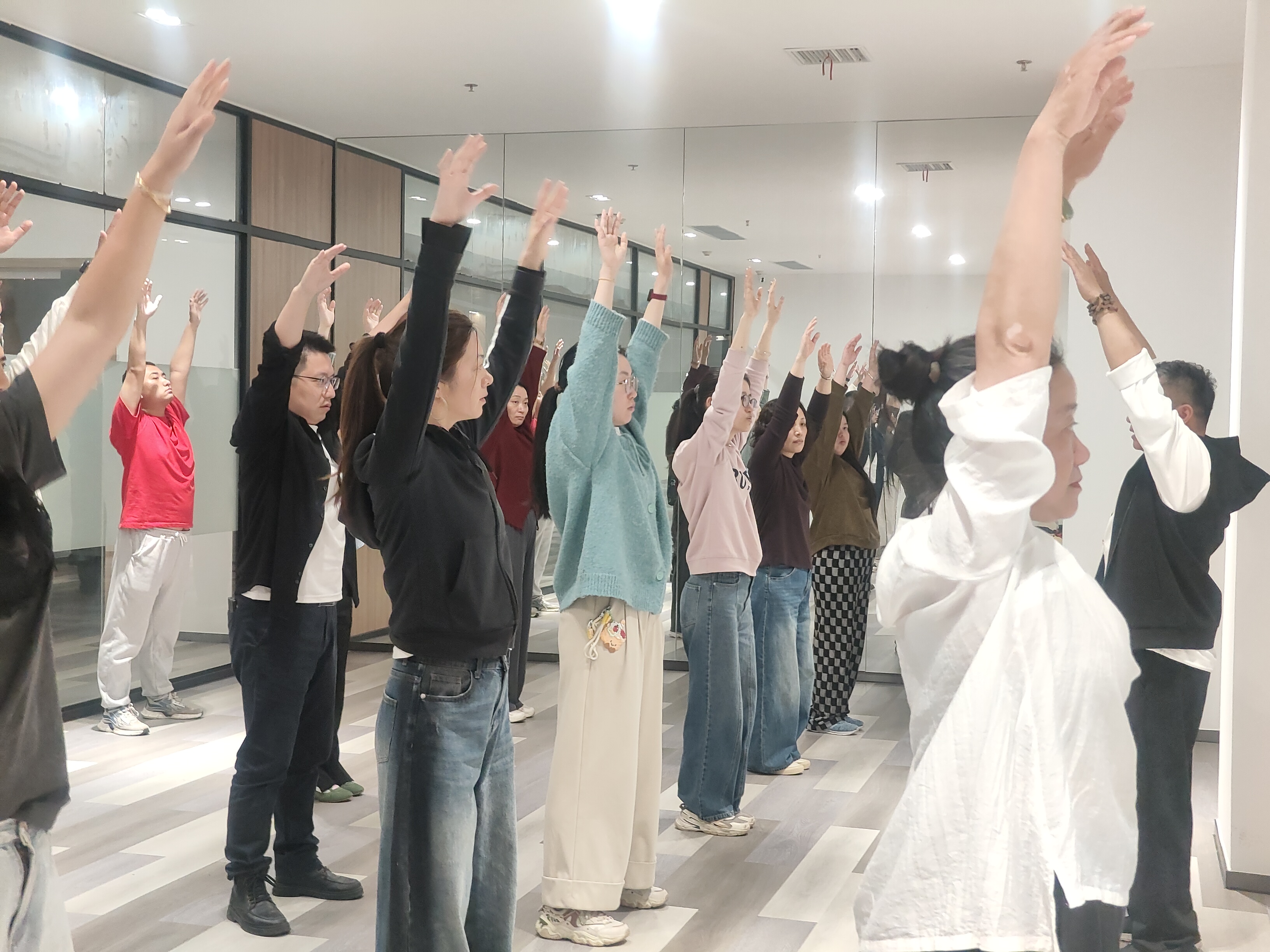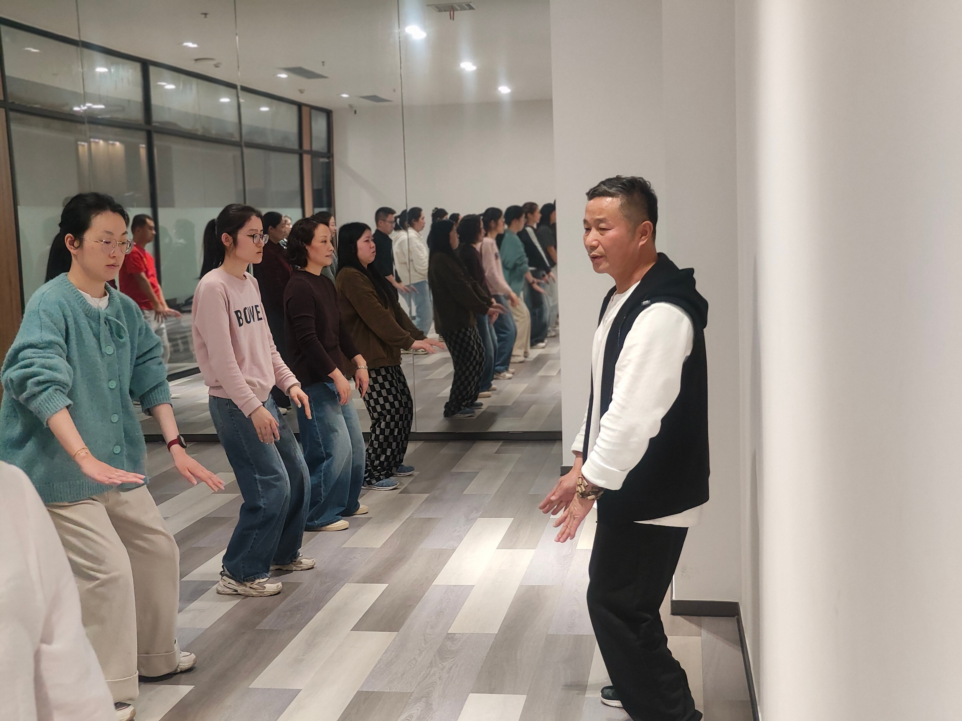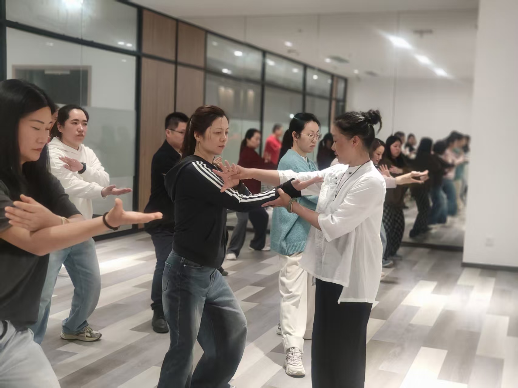 课程伊始,吕老师便带领大家从最基础的站桩、手法及步法入手,将太极拳“以意导气、以气运身”的精髓深入浅出地拆解开来。他耐心细致地纠正每一位学员的动作,引导大家在刚柔并济的韵律中感受身体的舒展与气血的调和,让学员们在行云流水般的教学氛围中,领略太极文化的博大精深。